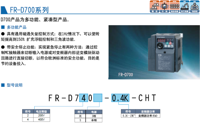 【优控机电】三菱变频器FR-D700系列产品概述: