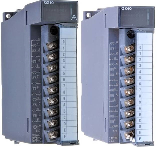 三菱Q系列PLC属于模块式的PLC,关于电源模块、CPU模块和基板,今天优控机电的小编和大家一起来谈谈Q系列PLC的数字量输入模块(Digtal Input module)。 Q系列PLC的数字量输入模块有很多的类型,根据工作电压的不同,可以分为直流电(DC)输入模块和交流电(AC)输入模块;比如,QX10 AC的工作电压为100~120V交流电,电流的频率为50/60 Hz;而QX40 DC的工作电压为直流24V。QX10AC和QX40 DC的外观如下图: