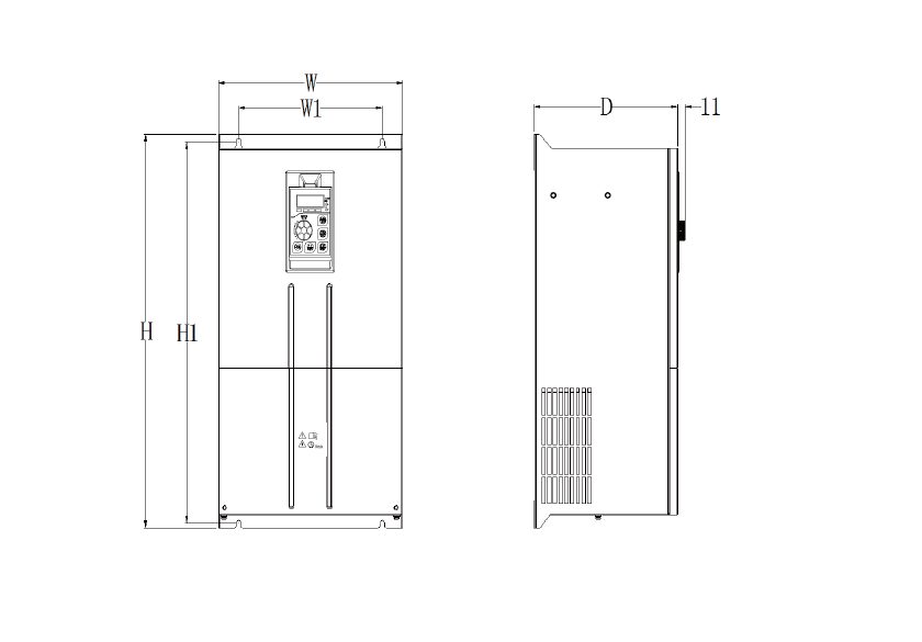 11-132KW钣金机箱外形尺寸及安装尺寸示意图: