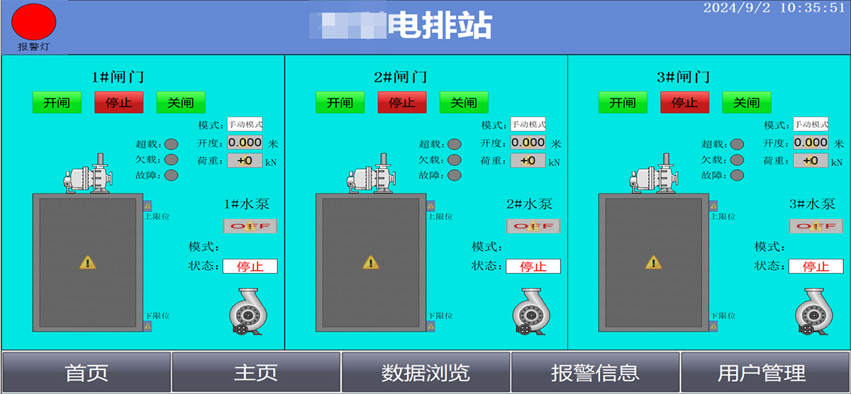监控与控制:实时监控电排站的运行状态,包括电机、泵、阀门等设备的工作状态,并能够进行远程或本地控制。