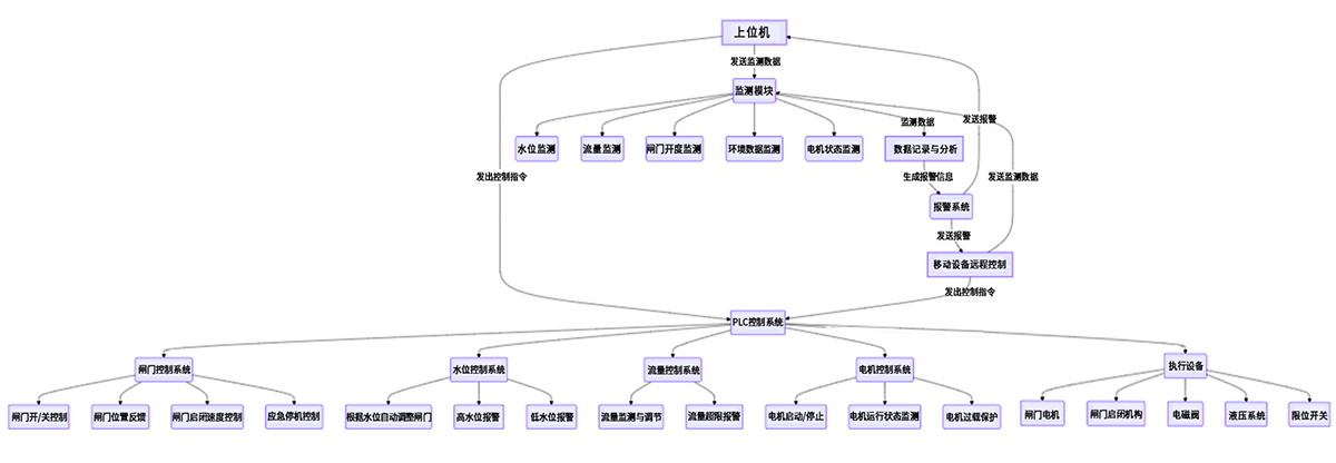 电排站闸门自动化控制系统主要用于城市排水、洪水管理、以及排水渠的闸门控制,支持现场单独控制和群体控制,亦可进行异地远程操控。该系统旨在实现集中监控与远程控制的功能,能够在监控中心轻松地执行闸门的启闭操作,提供自动化控制和系统联动功能。